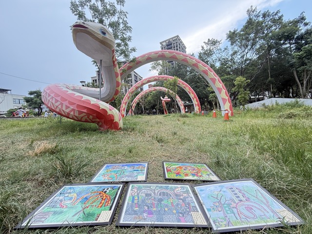 2025年大型蛇燈🐍於2月迄今設置長壽公園於8/31功成身退,小朋友於8/30用豐富的色彩,留下祥蛇美麗且生動的繪畫作品,讓公園不只是運動、遊憩的場所,也是藝術美學最好發揮的場所。