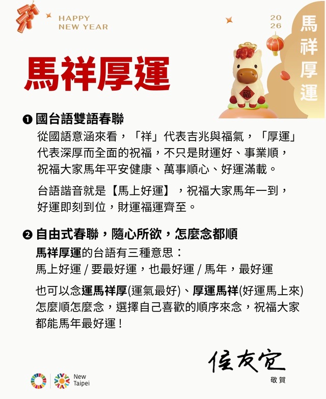 新北市樹林區公所 祝褔大家 馬祥厚運 馬上好運 安駒樂業 厚積幸福